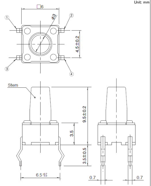 6x6x9.5mm 6mm方型(按入式) 易使用且有豐富的產(chǎn)品種類而受到好評的6mm方型。