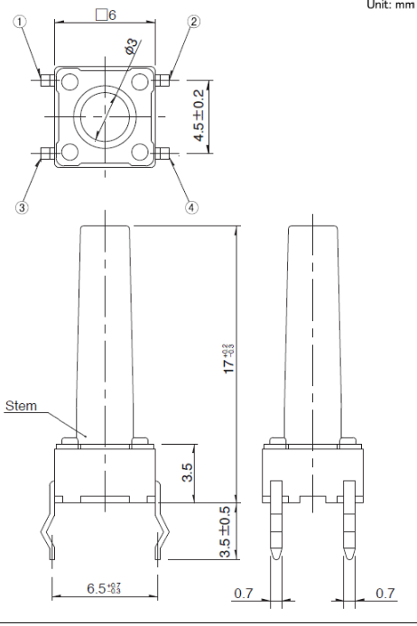 6x6x17mm 6mm方型(按入式) 易使用且有豐富的產(chǎn)品種類而受到好評的6mm方型。