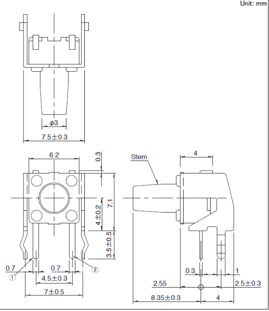 6mm方型(按入式) 易使用且有豐富的產品種類而受到好評的6mm方型。