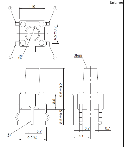 6x6x9.5mm 6mm方型(按入式) 易使用且有豐富的產(chǎn)品種類而受到好評的6mm方型。