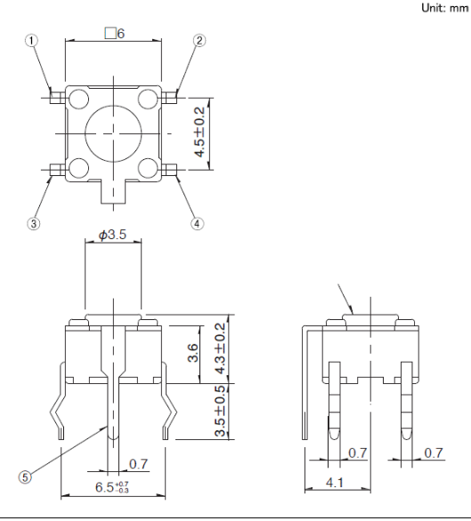 6x6x4.3mm 6mm方型(按入式) 易使用且有豐富的產(chǎn)品種類而受到好評的6mm方型。
