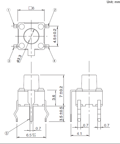 6x6x7mm 6mm方型(按入式) 易使用且有豐富的產(chǎn)品種類而受到好評(píng)的6mm方型。