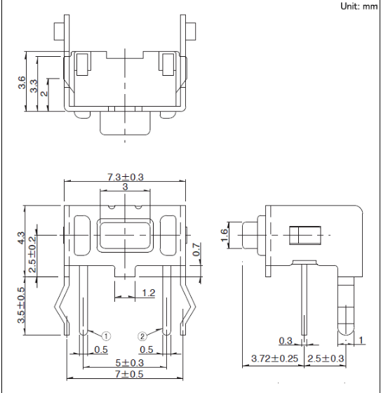 6×3.5mm 小型(按入式)為高密度貼裝做出貢獻(xiàn)的頂推型和側(cè)推型兩種型號。
