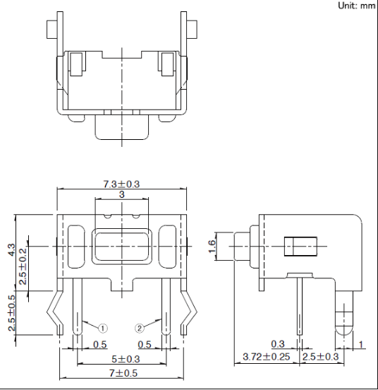 6×3.5mm 小型(按入式)為高密度貼裝做出貢獻(xiàn)的頂推型和側(cè)推型兩種型號。