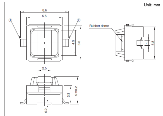 6.6x6.3x5mm 6.6×6.3mm重動作力型(表面貼裝) 通過薄型化和重動作力, 最適合于汽車用組件的表面貼裝型?