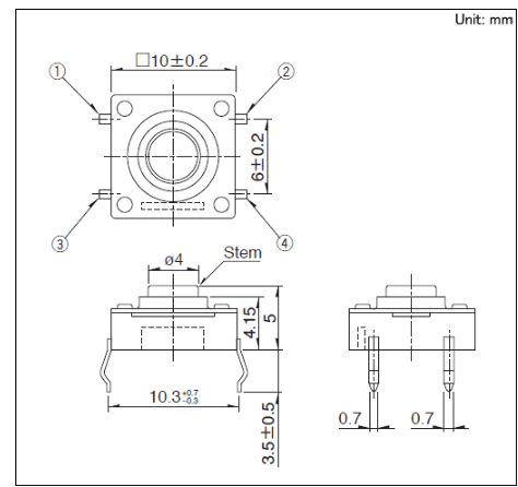 10x10x5mm 10mm方型防水型(按入式) 實現(xiàn)良好的防水·防塵結(jié)構(gòu), 適用于有防水要求家電產(chǎn)品。