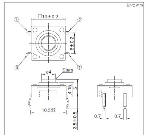 10x10x5mm 10mm方型防水型(按入式) 實現(xiàn)良好的防水·防塵結(jié)構(gòu), 適用于有防水要求家電產(chǎn)品。
