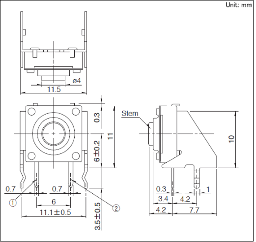 10mm方型防水型(按入式) 實現(xiàn)良好的防水·防塵結(jié)構(gòu), 適用于有防水要求家電產(chǎn)品。