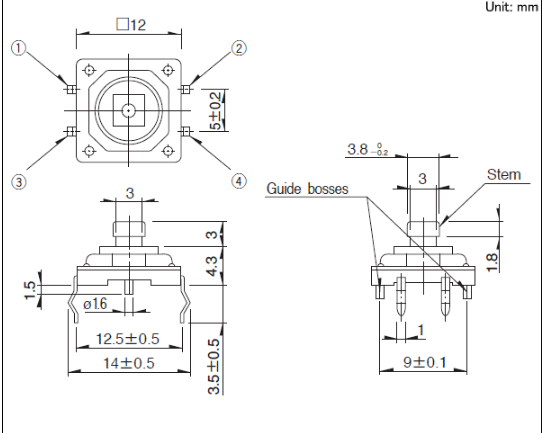 12mm方型長(zhǎng)壽命型(按入式) 采用了獨(dú)有的防塵結(jié)構(gòu)和高可靠金屬接點(diǎn)的長(zhǎng)壽命型。