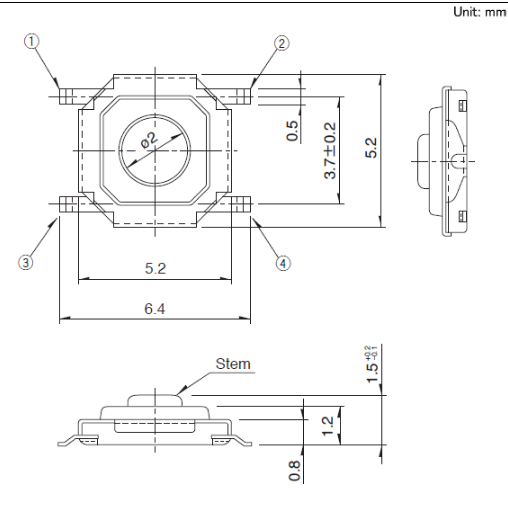 5.2x5.2x1.5 5.2mm方型薄型(表面貼裝) 高1.5mm的薄型。