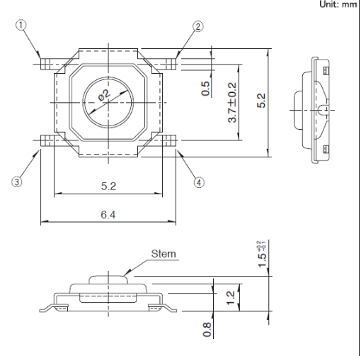 5.2x5.2x1.5 5.2mm方型薄型(表面貼裝) 高1.5mm的薄型。