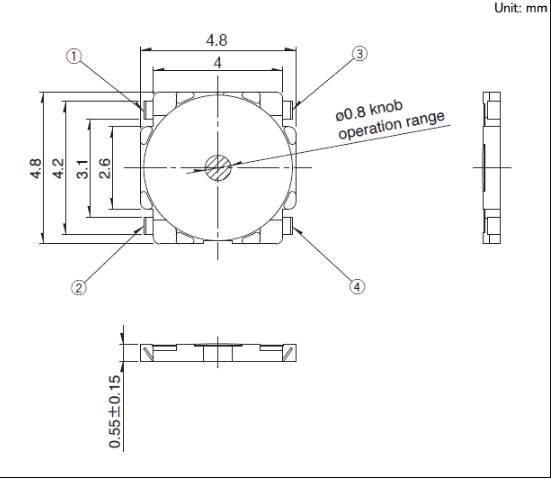 4.8x4.8x0.55mm 4.8mm方型薄型(表面貼裝) 高0.55mm的小型?薄型款。