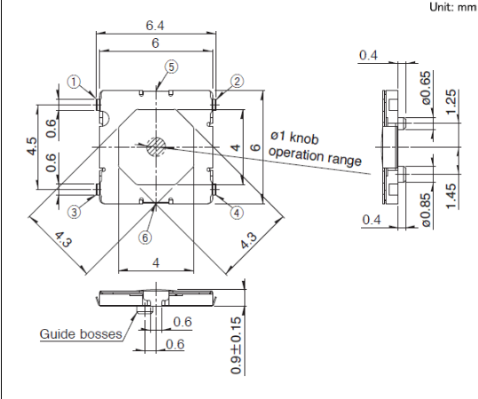 6x6x0.9mm 6mm方型薄型雙重動(dòng)作型(表面貼裝) 薄型0.9mm, 雙重動(dòng)作型?