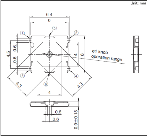 6x6x0.9mm 6mm方型薄型雙重動作型(表面貼裝) 薄型0.9mm, 雙重動作型?