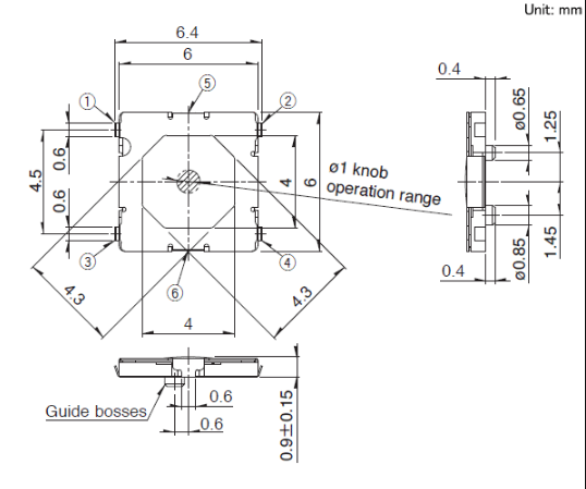 6x6x0.9mm 6mm方型薄型雙重動作型(表面貼裝) 薄型0.9mm, 雙重動作型?