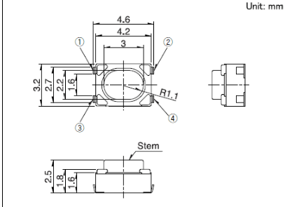 4.2x3.2x2.5mm 4.2×3.2mm小型重動(dòng)作力(表面貼裝) 適合于汽車用需要的重動(dòng)作力, 按鈕面積大貼裝性能優(yōu)良?