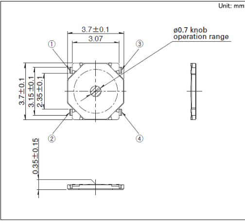 3.7x3.7x0.35mm 3.7mm方型薄型(表面貼裝)高0.35mm的小型?薄型款。