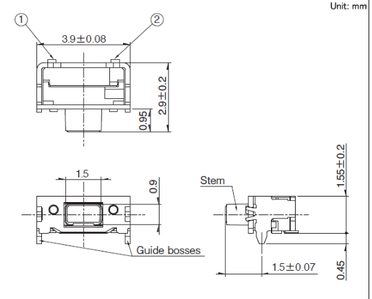 3.9x2.9x1.55mm 3.9×2.9mm Side Push型(表面貼裝)通過外框焊接的方式,實(shí)現(xiàn)了高焊接強(qiáng)度。