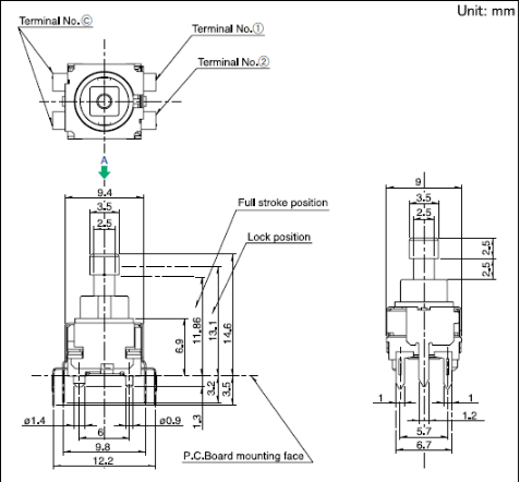 9.4x9x6.9mm 1.5mm行程立式 實現(xiàn)無鉛焊接表面貼裝的按動開關(guān)。