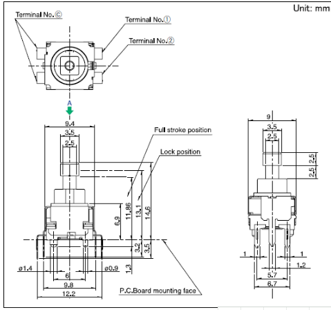 9.4x9x6.9mm 1.5mm行程立式 實(shí)現(xiàn)無鉛焊接表面貼裝的按動開關(guān)。
