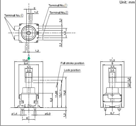 9.4x9x6.9mm 1.5mm行程立式 實現(xiàn)無鉛焊接表面貼裝的按動開關(guān)。