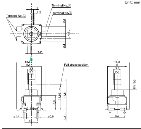 9.4x9x6.9mm 1.5mm行程立式 實(shí)現(xiàn)無鉛焊接表面貼裝的按動開關(guān)。