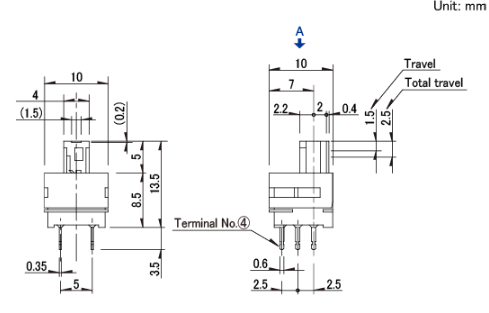 10x10x8.5mm 1.5mm行程立式 具有兩種旋鈕形狀的立式。