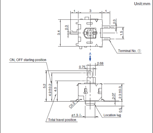 3.4x3x2.3mm 小型單向動(dòng)作型 3.4×3.0mm,業(yè)界最小級(jí)別,可以對(duì)應(yīng)小型數(shù)字設(shè)備。