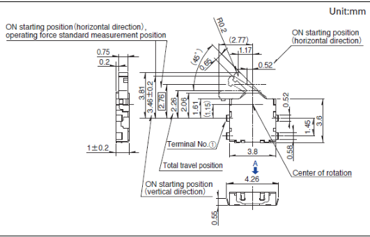 3.8x3.6x1mm 薄型雙向動(dòng)作型 厚度為1mm的薄型。