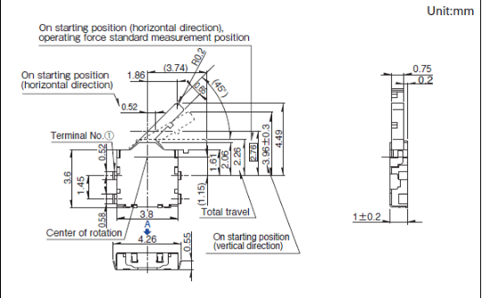 3.8x3.6x1mm 薄型雙向動作型 厚度為1mm的薄型。