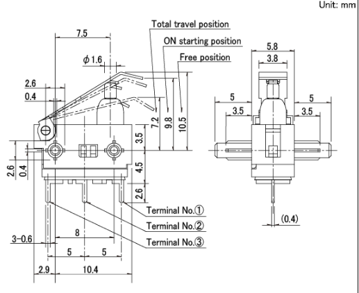 13.3x5.8x8mm 防水型 帶防水功能的3mm的長(zhǎng)行程型。