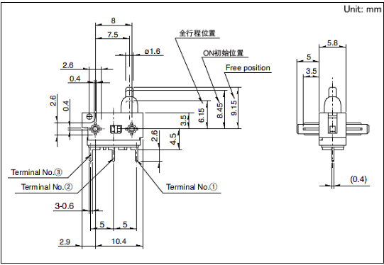 13.3x5.8x8mm 防水型 帶防水功能的3mm的長行程型。