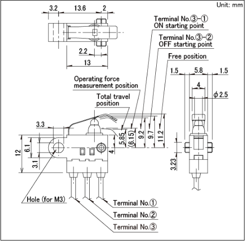 13x5.8x8.35mm 防水型 無驅(qū)動(dòng)機(jī)構(gòu),可斜壓的長(zhǎng)行程型。