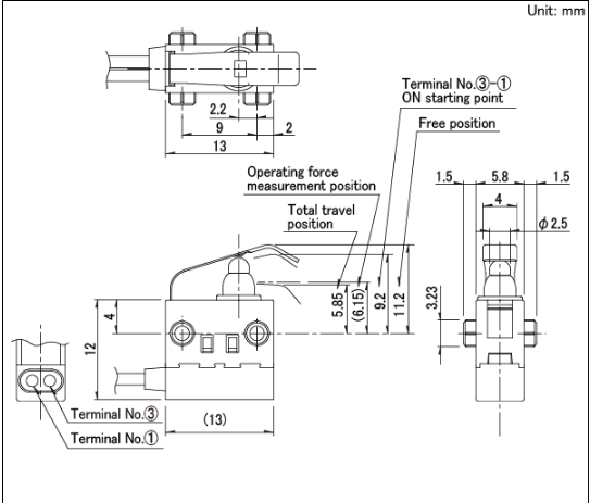 13x5.8x8.35mm 防水型 無驅(qū)動(dòng)機(jī)構(gòu),可斜壓的長行程型。