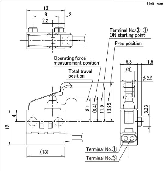 13x5.8x8.35mm 防水型 無驅(qū)動(dòng)機(jī)構(gòu),可斜壓的長行程型。