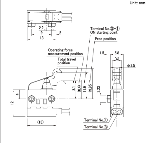 13x5.8x8.35mm 防水型 無驅(qū)動機構(gòu),可斜壓的長行程型。