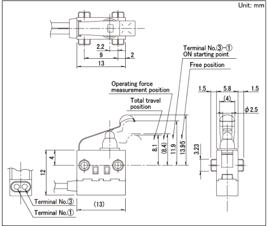 13x5.8x8.35mm 防水型 無驅(qū)動(dòng)機(jī)構(gòu),可斜壓的長行程型。