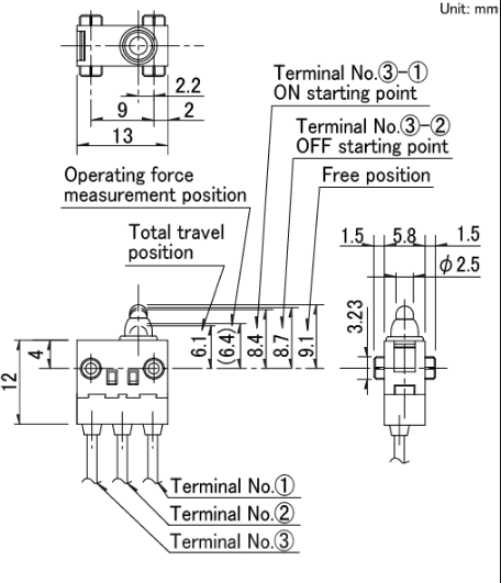 13x5.8x8.35mm 防水型 無(wú)驅(qū)動(dòng)機(jī)構(gòu),可斜壓的長(zhǎng)行程型。
