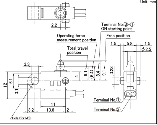 13x5.8x8.35mm 防水型 無驅動機構,可斜壓的長行程型。