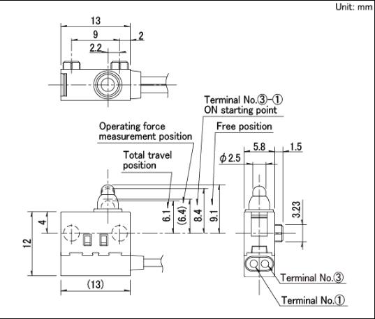 13x5.8x8.35mm 防水型 無驅(qū)動(dòng)機(jī)構(gòu),可斜壓的長(zhǎng)行程型。