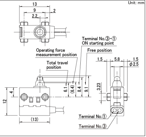 13x5.8x8.35mm 防水型 無驅(qū)動(dòng)機(jī)構(gòu),可斜壓的長行程型。
