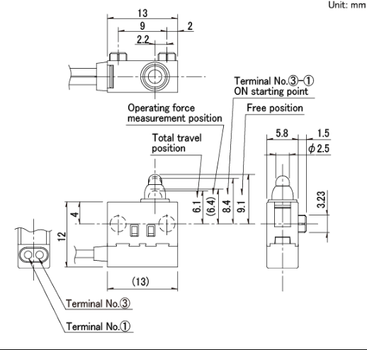 13x5.8x8.35mm 防水型 無(wú)驅(qū)動(dòng)機(jī)構(gòu),可斜壓的長(zhǎng)行程型。