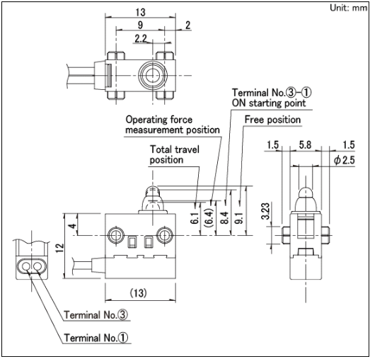 13x5.8x8.35mm 防水型 無驅(qū)動機構(gòu),可斜壓的長行程型。