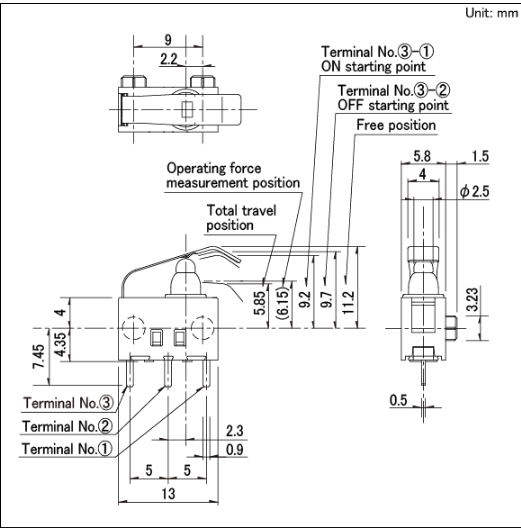 13x5.8x8.35mm 防水型 無驅(qū)動機(jī)構(gòu),可斜壓的長行程型。