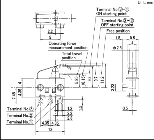 13x5.8x8.35mm 防水型 無(wú)驅(qū)動(dòng)機(jī)構(gòu),可斜壓的長(zhǎng)行程型。