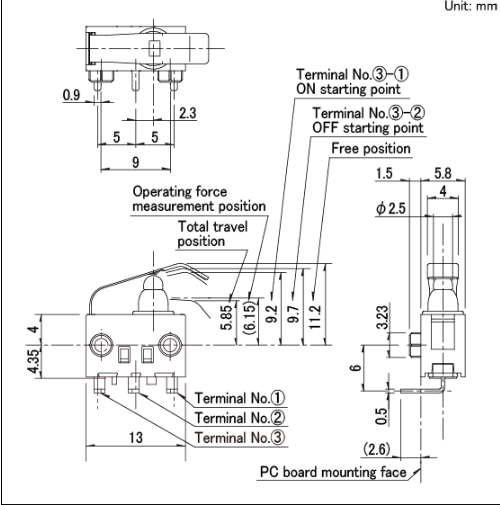 13x5.8x8.35mm 防水型 無驅(qū)動機構(gòu),可斜壓的長行程型。