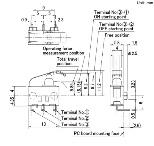 13x5.8x8.35mm 防水型 無驅(qū)動(dòng)機(jī)構(gòu),可斜壓的長行程型。