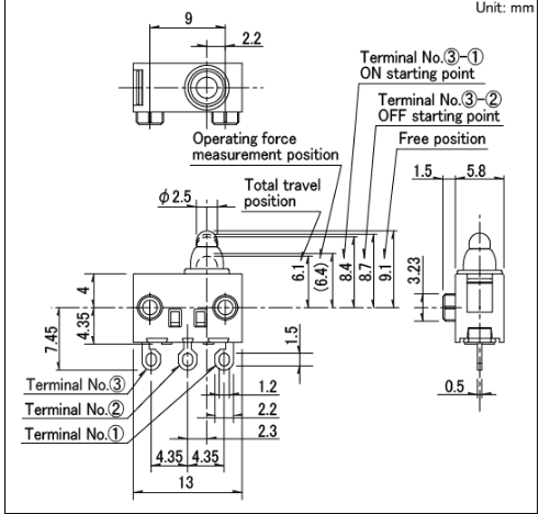 13x5.8x8.35mm 防水型 無驅(qū)動機構(gòu),可斜壓的長行程型。
