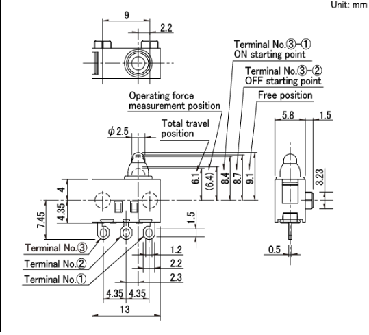 13x5.8x8.35mm 防水型 無驅(qū)動機構(gòu),可斜壓的長行程型。