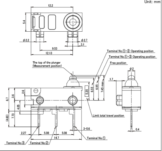 14.75.46.7mm 防水型 主體高度為6.7mm,低背式。